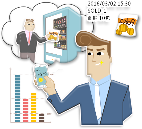 獨創物流管理App及電腦版管理平台,涵蓋各種管理功能,包含即時查詢機器運作狀態、交易資訊細項、機台商品數量、規劃物流配置等,將營運成本最小化。此外,亦可透過遠端管理設定折扣活動(例:商品第二件八折),同時提供商品消費分析報表作為調整商品之依據,為一集聚多元化功能、更貼近消費者需求的智能平台。